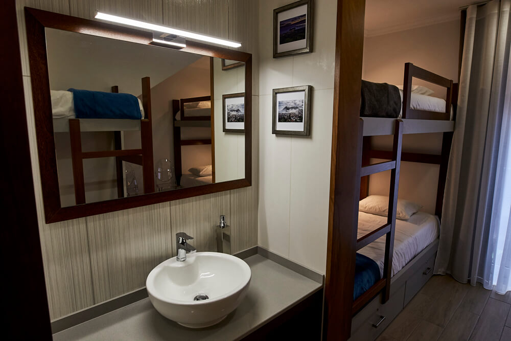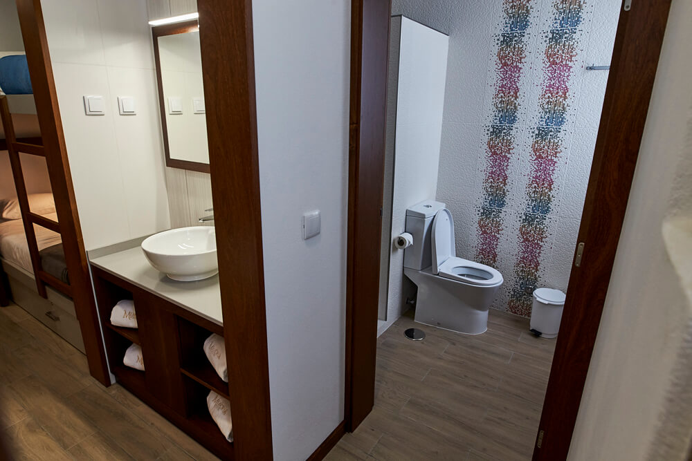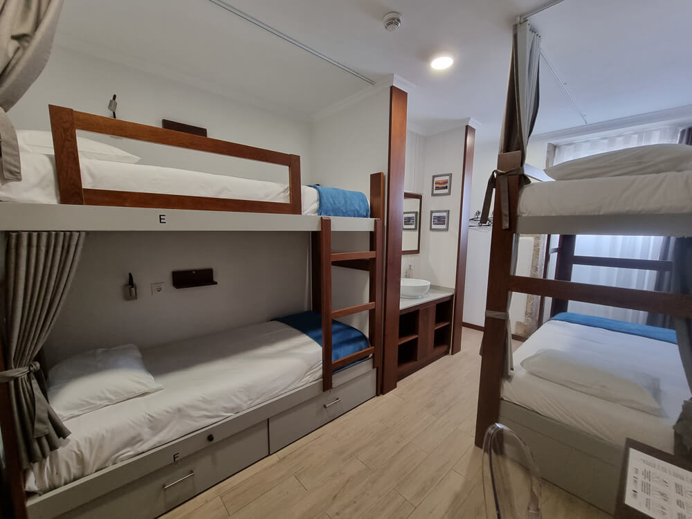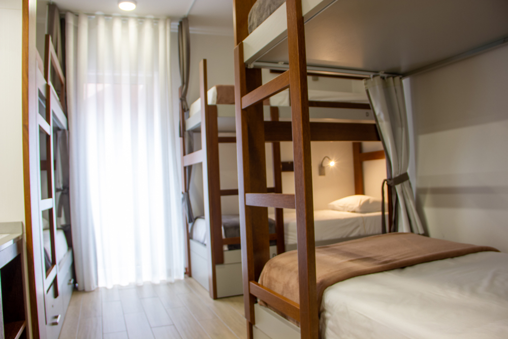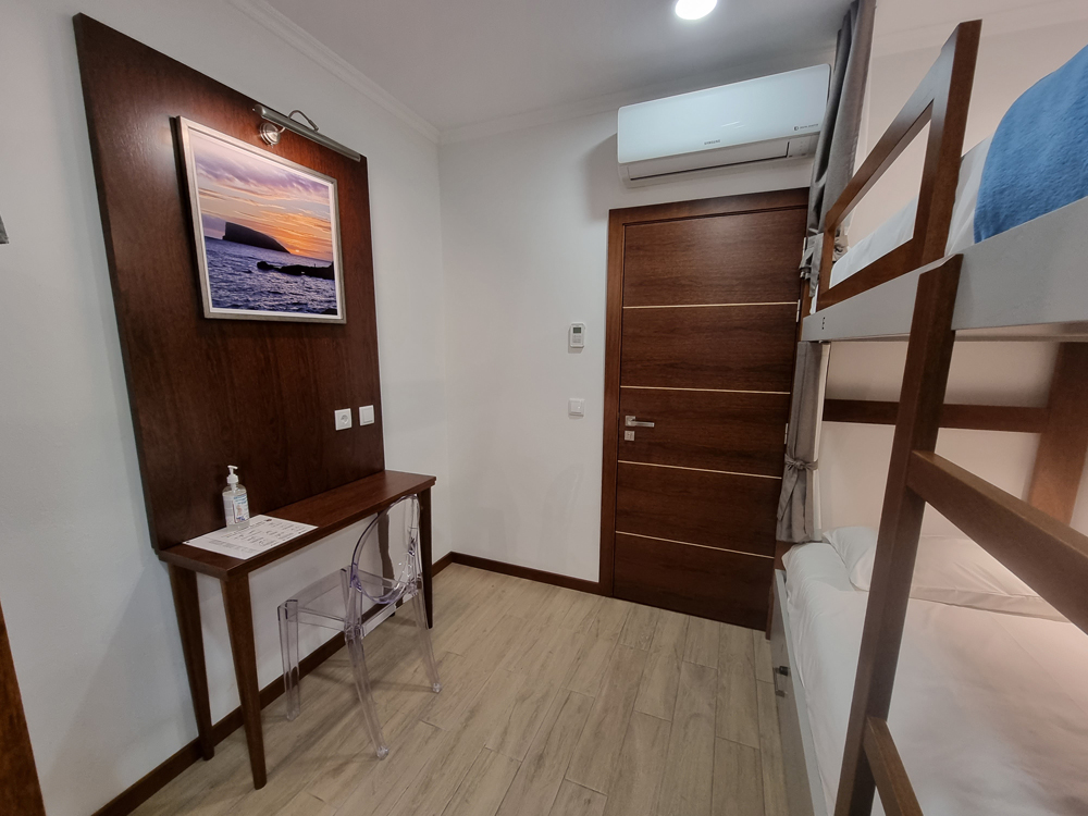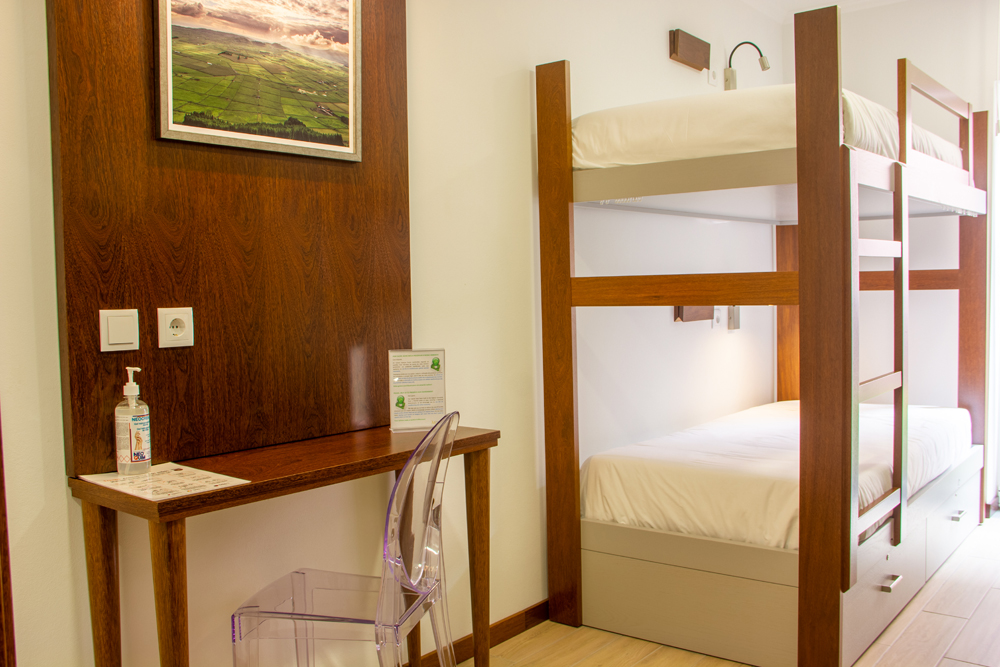 Os dormitórios (2 mistos e 1 feminino), além de acolhedores e funcionais, procuram refletir a beleza e grandiosidade da natureza açoriana, tanto em terra como no mar.